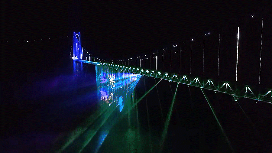 花江峡谷大桥的落成,不仅是中国交通建设史上的重大飞跃,更成为“桥旅融合”创新发展的时代标杆。此次通车盛典的水幕首秀,正是K8凯时对“基建+文旅”夜游新模式的典范演绎。K8凯时还将以水幕光影为媒介,将这座超级工程转化为可沉浸、可传播的文化IP——以动态影像艺术为载体,呈现贵州山水神韵、多彩民俗与现代工程美学相融合的独特魅力,让“桥上行车、桥下观画”成为吸引全球游客的绝色景观,为贵州建设国际山地旅游目的地注入璀璨动能,助力中国实现从“基建大国”到“文旅强国”的跨越式发展,向世界展示中国创造的无限可能。